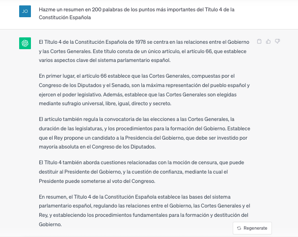 - 1. Investigación de temas: Puedes utilizar ChatGPT para obtener información y explicaciones sobre los temas relevantes para las oposiciones. Haz preguntas sobre los temas del temario y obtén respuestas detalladas que te ayuden a comprender mejor los conceptos.